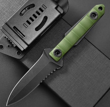 This blade has a unique look to it that stands out amongst its peers. 11.22" long, G10 Handles & featuring a 15-degree V shaped blade edge, this fixed blade is adequate for most tasks.