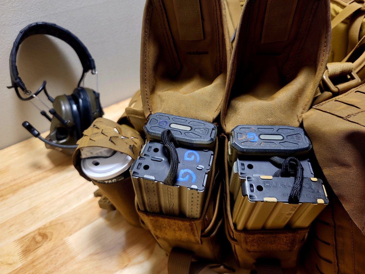 The 556 Recce Pouches are a bit of a love hate thing. Most of the mags I own are P Mags which due to their increased thickness don't fit very well when you run this pouch as intended with 3 mags. It was made for the USGI metal mags and holds them perfectly, but I would prefer something that could run P mags without being a nasty tight fit. And as fate would intend it, soon as I got in my recce pouches, Carcajou released their 762 Recce Pouch that literally fixes this exact problem. Whatever. I'm not paying for 3 exact same pouches just a hair bigger. I just toss 2 metal mags and one P mag into each pouch, and it works just fine. Finger loop pull tabs made of 550 cord on each of the metal mags to aid in retrieval and it's a fairly smooth system with practice.