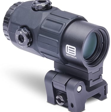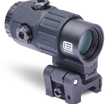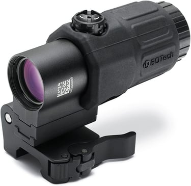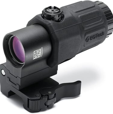 This 5x magnifier from EOTECH, offers the user magnification when the user wants it, & can be flipped to the side or center when not in use. Has 2x more than the G33 but comes with a slightly reduced eye relief.