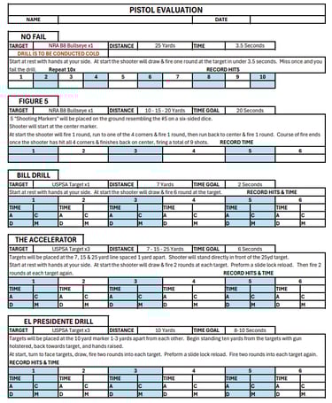 PISTOL EVALUATION & DRILL SHEET