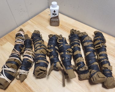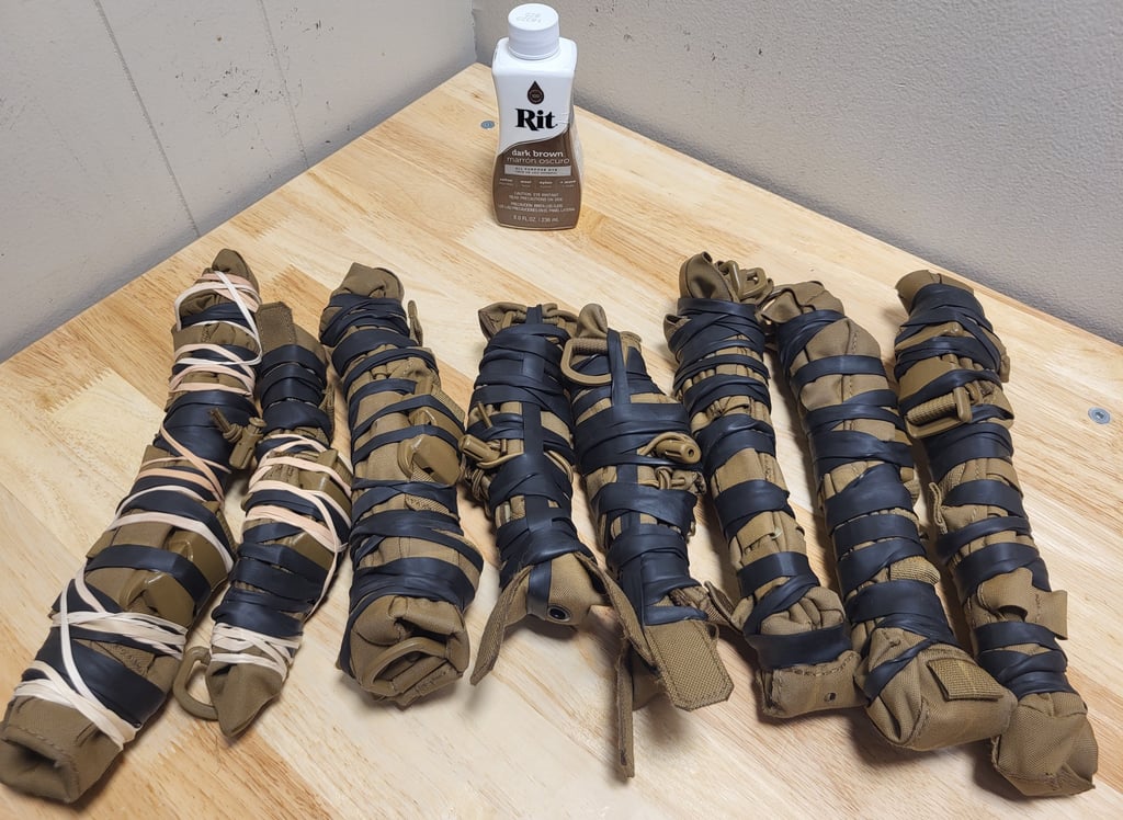 Far as I know there isn't really a guide when it comes to specifically tie dying pouches or other nylon equipment, but there's nothing really about them that would make this process any different than the tie dye shirts some of us made in grade school. Nothing except the materials in which the pouches are made up of that is. Unlike the cotton T-shirts, these pouches were made up of 500D Laminate which doesn't take up your standard dye nearly as well. Now there is dye mixture made up specifically for this kind of material which I was unaware of on my first attempt but did know prior to my 2nd. However, I decided to stick with the devil I already knew so to speak. Thanks to my prior attempt, I already had a good idea of how the mixture would affect the pouches & figured if nothing else, having a final product that was too light vs too dark would be ideal.