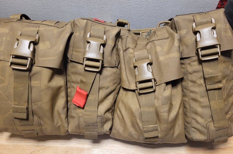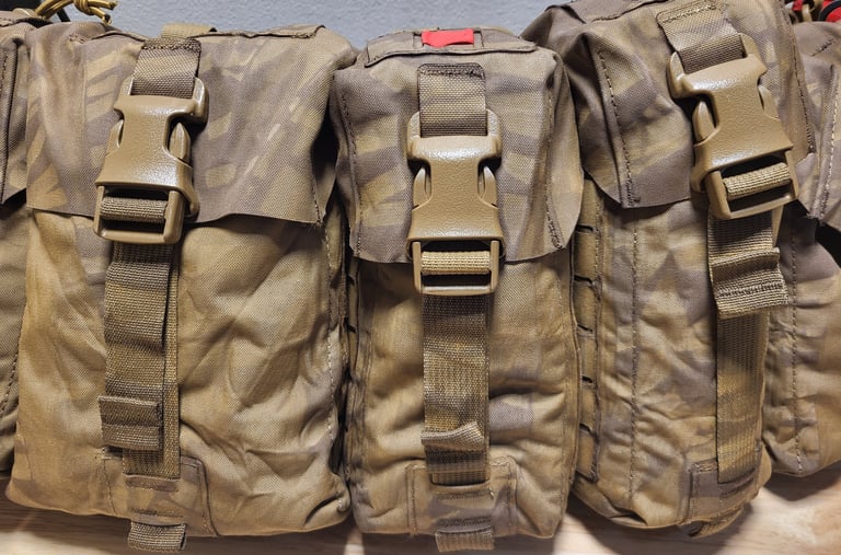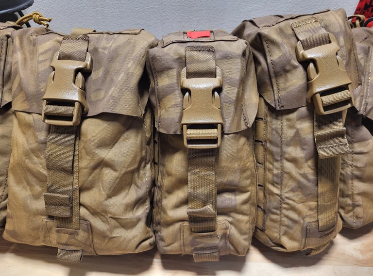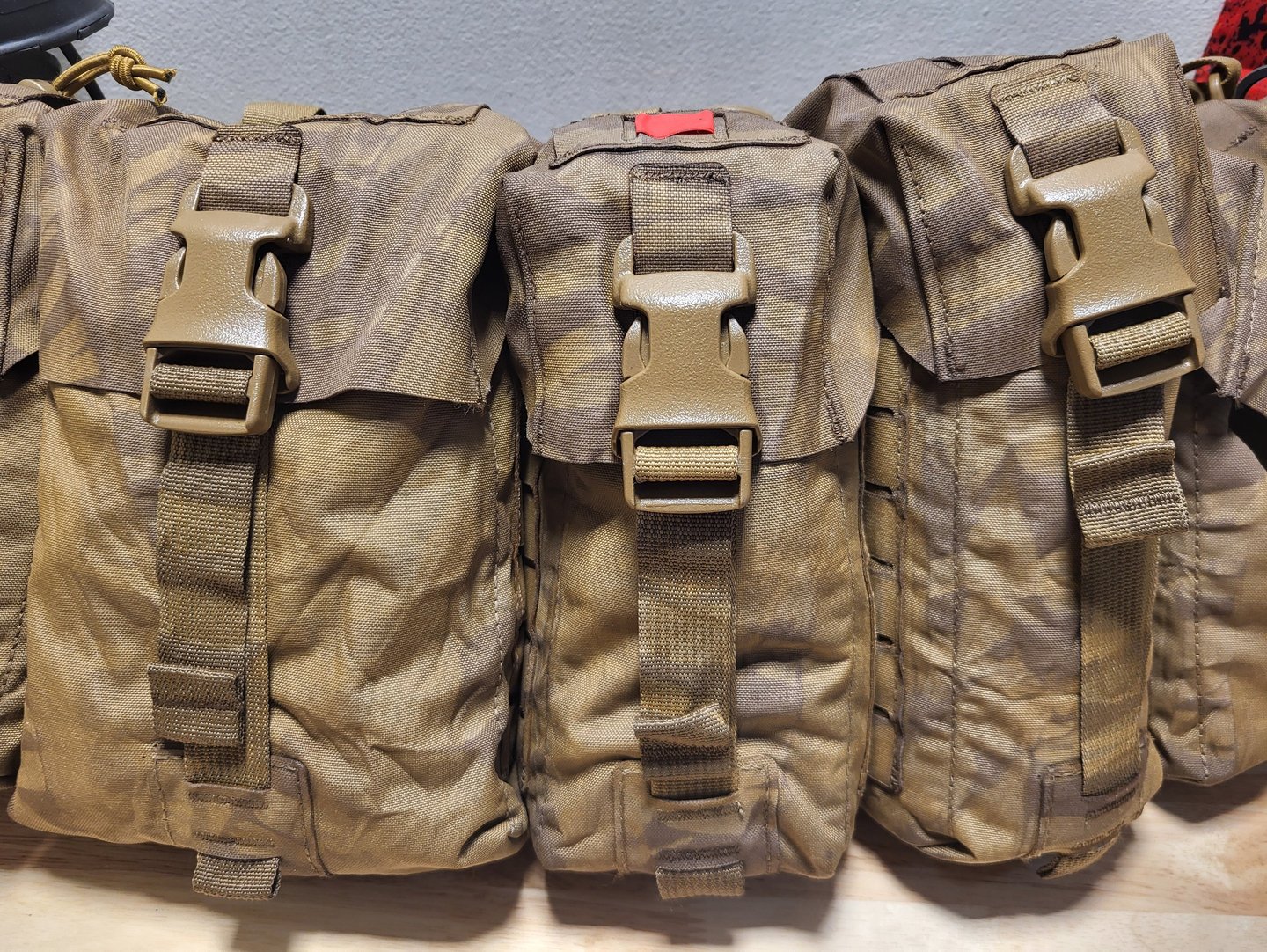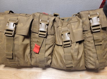 In the end I was able to achieve that 3 layers of colors on each pouch more or less. Thanks to the way I folded my pouches, the larger pouches ended up with a bit of a blank spot on the face of the body section. The darker tones are absolutely easier to see compared to my last attempt; however, they are not exactly how I pictured it in my head. All in all, I'm very happy with the end results & will probably leave them be. Coyote for my area was just a bit too bright so the fact that I was able to tone down that pop so to speak makes this process a success in my book.