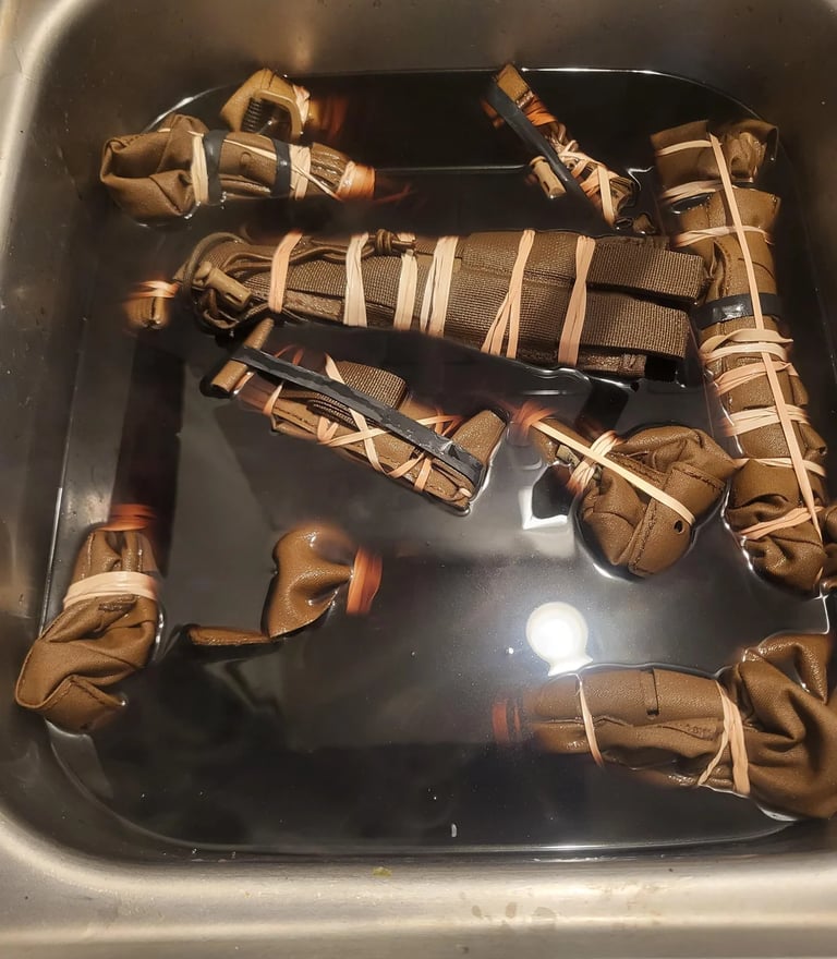 Once you have everything mixed up, the only thing left to do in submerge the pouches into the mixture. Again, from what I can recall from my loose read of the instructions, it calls for a 30-minute soak. Being sure to keep all items completely submerged & to stir up the mixture every few minutes.