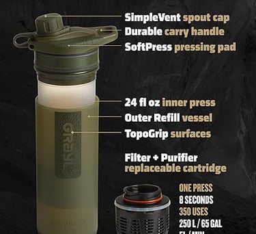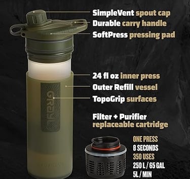 Removes 99.99% of Virus, Bacteria & Protozoa. Filters 24oz of dirty water into the built in water container in seconds. A great option for those looking to save weight & space.