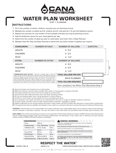 Downloadable PDF copies of Cana Provisions Water Treatment Plan Step 1 & 2.